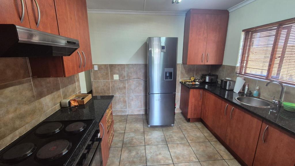 - Kitchen is equipped with granite counter tops, ample built in cupboards, space for double door fridge and has a scullery with plumbing for all your appliances and walk in pantry.