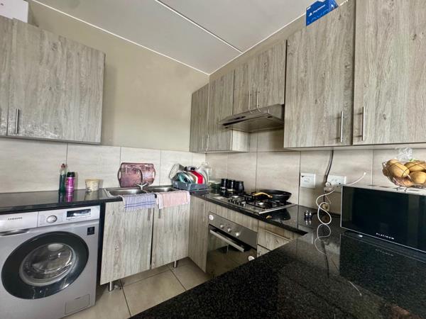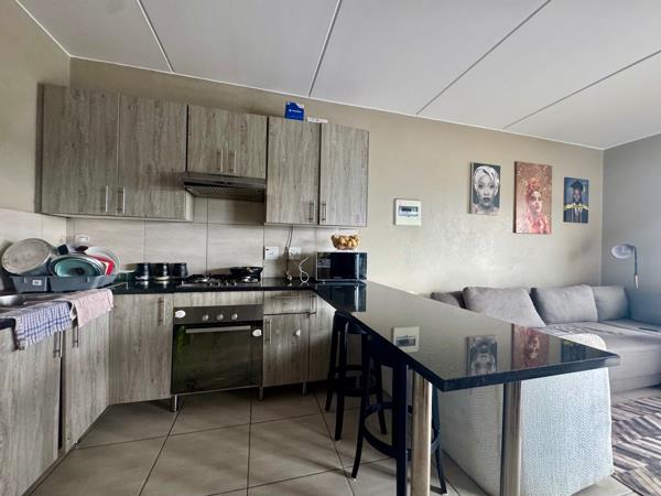 The kitchen is functional with ample cupboard space, and the living area is bright and airy, perfect for everyday living. Both bedrooms have built-in cupboards and share a clean, modern bathroom.