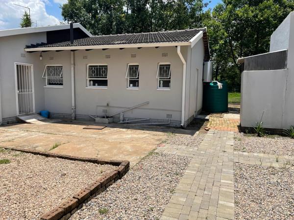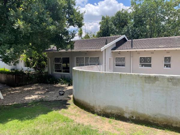 The main house has 3 bedrooms, dining room, lounge, a separate kitchen, 2 bathrooms one with shower and the other with a bath tub, as well as a covered wooden deck patio. There is a large wooden-thatched lapa situated just in front of the patio. The patio overlooks the vast grounds which have lots of trees and greenery.