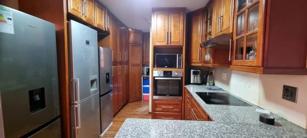 It has a large cherrywood kitchen and an open plan lounge and dining area.