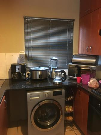- The stylish kitchen offers modern melamine cupboards with melamine tops. Provision has been made for a single door fridge and 1 under counter appliance. Kitchen has recently been enhanced and more cupboards added.