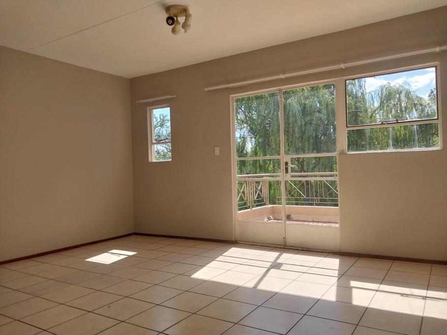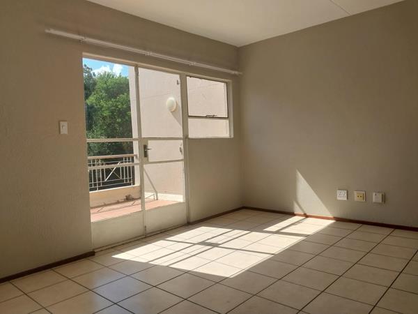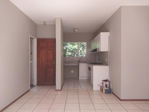 The open plan living area has a lot of natural light filtering in through the glass doors, and more than enough space for a sizeable lounge suite and leads to a patio.