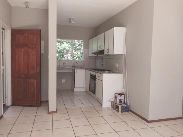 The spacious kitchen with ample cupboard space, with melamine counter tops, a stove, space for a single door fridge and washing machine.