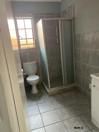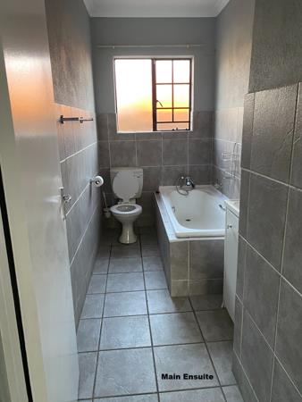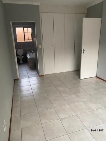 Single story unit, 3 Bedroom, 2 bathrooms 1 en-suite with bath and 1 guest bathroom with shower, large open plan kitchen, lounge and dining room, double automated garage, burglar guards and gates, large private garden. Close to schools and shopping centres. Electric fencing with guard at gate.