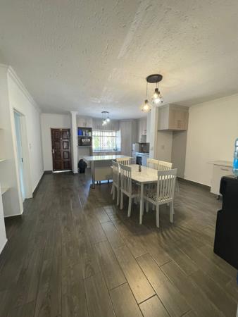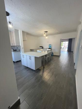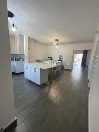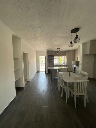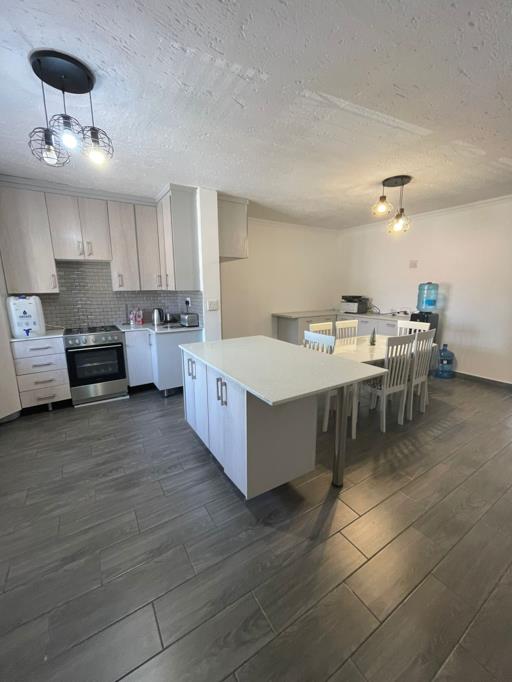 The open-plan kitchen flows into a spacious lounge and dining area, filled with natural sunlight throughout the day. Both bedrooms are generously sized, fitted with built-in cupboards, and each has its own bathroom for added privacy.