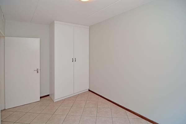 These 2 huge bedrooms and one bathroom with tubshower combo stunner is fully tiled and kitted with LOADS of built in cupboards, communal DSTV satellites and is guarded by 24 Hour patrolling guards. entering and exiting the estate is heavily enforced for that little bit extra peace of mind.