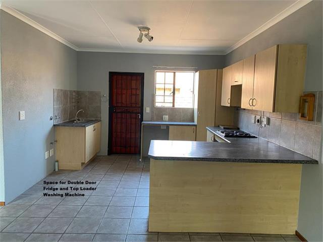 Single story unit, 3 Bedroom, 2 bathrooms 1 en-suite with bath and 1 guest bathroom with shower, large open plan kitchen, lounge and dining room, double automated garage, burglar guards and gates, large private garden. Close to schools and shopping centres. Electric fencing with guard at gate.