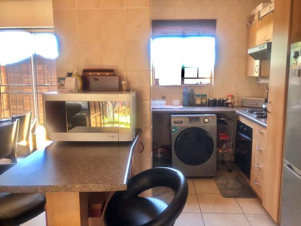 This well-presented duplex apartment offers larger-than-average living spaces with a practical layout and neat finishes throughout. All rooms are fully tiled and fitted with built-in cupboards. The open-plan lounge flows seamlessly through sliding doors into a private garden, ideal for relaxed living.