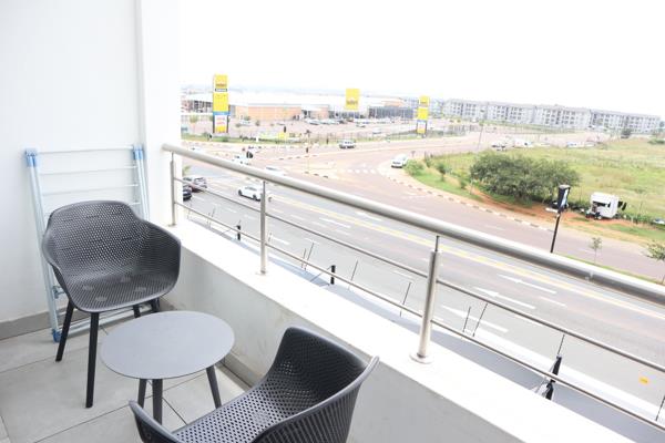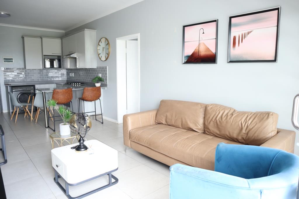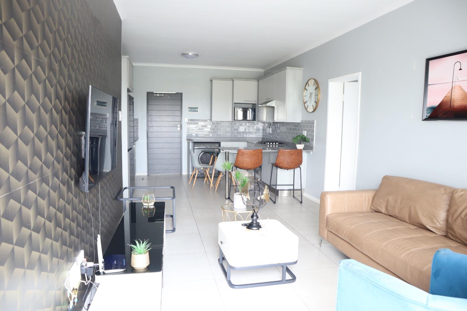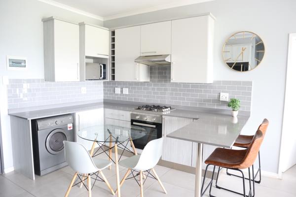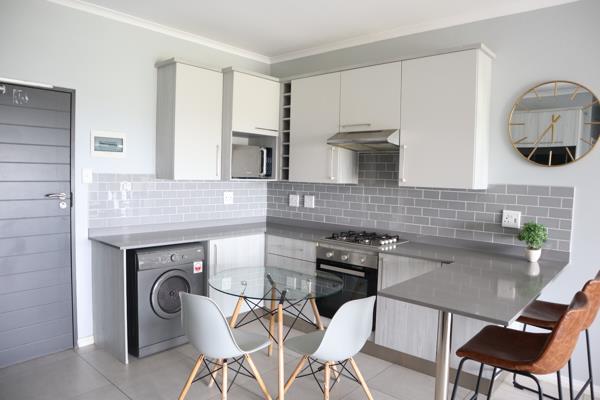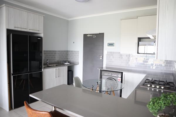 The apartment features a spacious open-plan living and dining area, tastefully furnished with contemporary dcor that flows seamlessly onto a private balcony, ideal for relaxing or entertaining. The modern kitchen is fully equipped with quality appliances, ample cupboard space, and elegant finishes, making everyday living effortless.