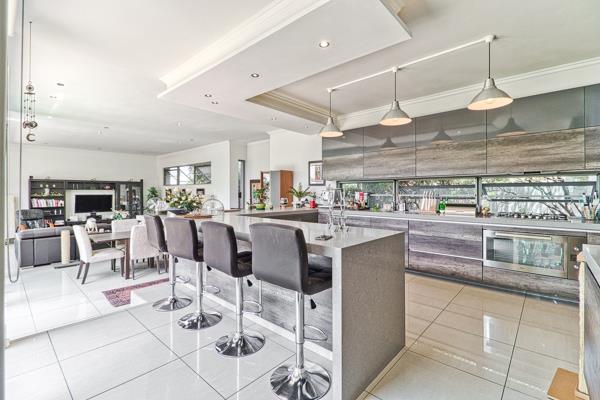Indulge in the luxury of four en-suite bedrooms, each featuring sumptuous bathrooms. Enjoy a captivating north-facing perspective that bathes the home in sunlight. This eco-friendly home is nearly off the electricity grid and is equipped with a 5 KVA inverter, two 3.5 KWH lithium-ion batteries, and solar panels for backup. Access to phase 3, offering an equipped gym, paddle court, communal swimming pool with a small restaurant with an entertainment area and a short distance to Reddam House prestigious school.