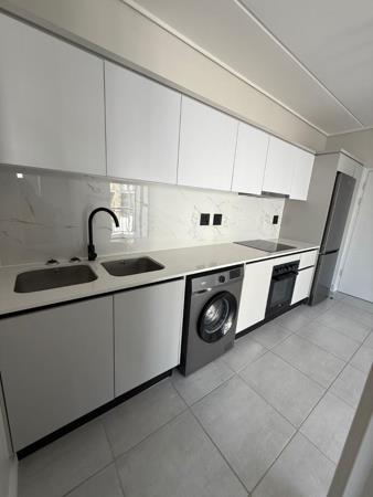The modern kitchen is fitted with eco-friendly appliances and flows seamlessly into the spacious open-plan living and dining area. This area opens onto a large private balcony an ideal space to relax and enjoy breathtaking city views.