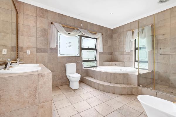 Manicured garden with sparkling pool, and covered patio with bar area and built-in braai that was built with entertaining in mind, double garage and staff accommodation complete this home.