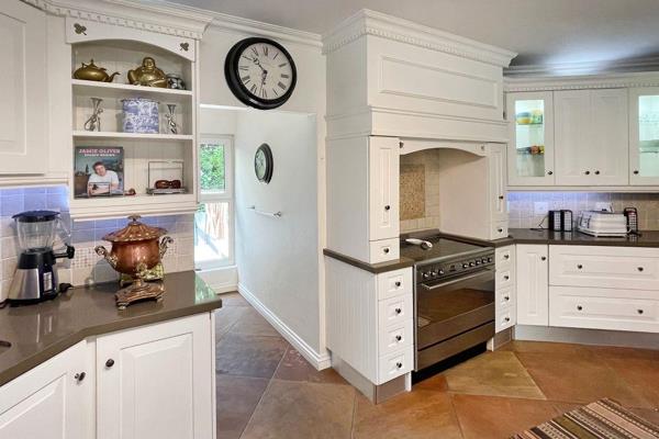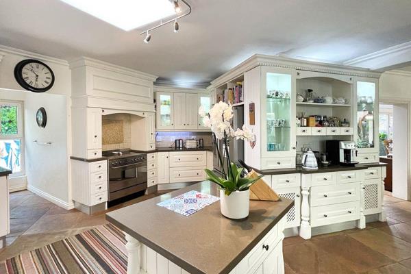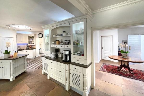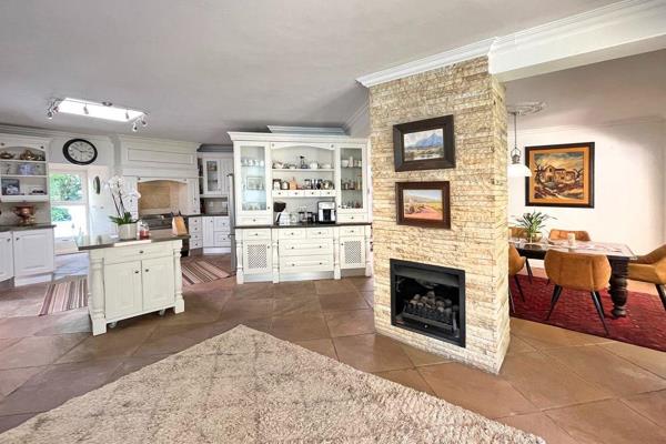 From the moment you enter, you''re greeted by a grand entrance hall that leads to an open-plan breakfast lounge, seamlessly flowing into a solid wood, country-style kitchen. The kitchen boasts granite countertops, a central island, a separate pantry, and a scullery for added convenience. The adjoining TV lounge features a cozy gas fireplace and a stunning cladded wall, while the spacious dining area is bathed in natural light from large windows, offering a perfect space for family gatherings.
