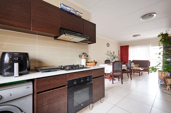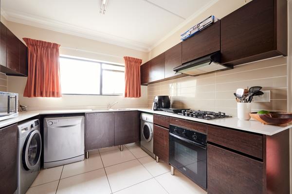 - The kitchen is fitted with ample built-in cupboards and counterspace and offers a gas stove and electric oven. The apartment is fitted with a washing machine, dishwasher, tumble dryer and fridge.