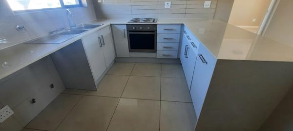 Discover this modern 80 sqm apartment available for rent in the sought-after Kyalami Hills. This inviting residence features two spacious bedrooms, both with en-suite bathrooms, offering privacy and convenience. The living area is bright and open, flowing seamlessly into a contemporary kitchen. The kitchen boasts sleek, light-colored cabinetry, ample countertop space, a double sink, and is equipped with a built-in oven and electric hob, perfect for culinary enthusiasts. Large windows and sliding doors throughout ensure abundant natural light, enhancing the neutral aesthetic and glossy tiled flooring.