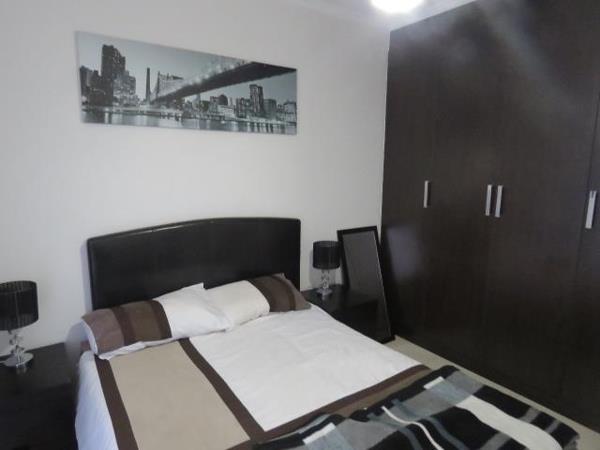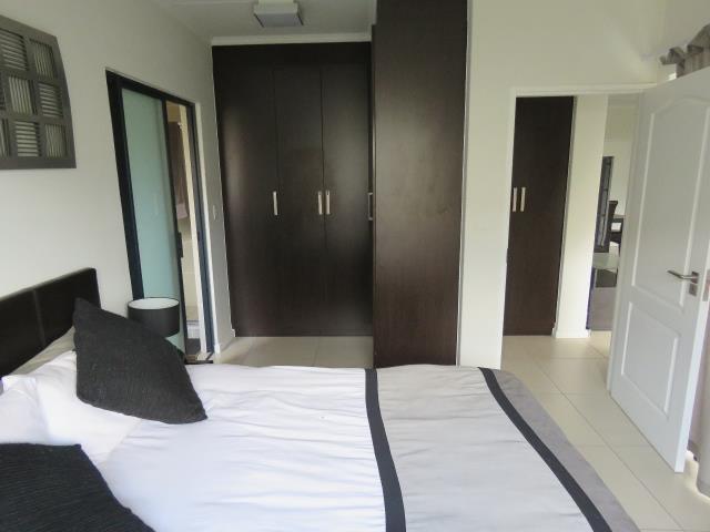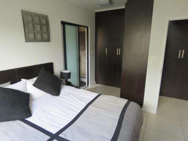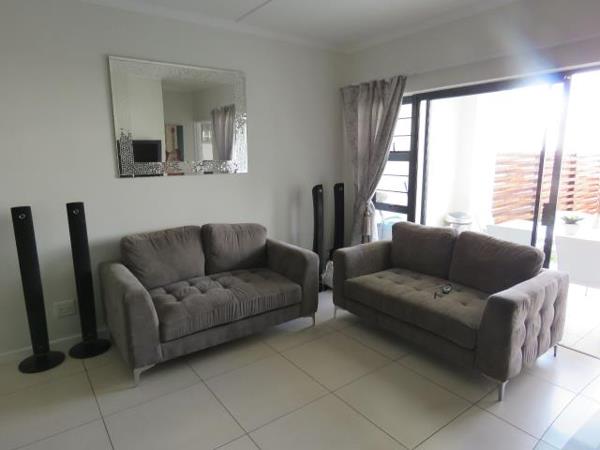 This modern ground floor apartment has 3 bedrooms with 2 bathrooms. The main bedroom has an en-suite with a shower. The family bathroom is a full bathroom with tub and shower. The kitchen has modern finishes with caesar stone counter tops and the rental includes a single fridgefreezer combo, a dishwasher, washing machine and tumble dryer. The hob works with gas and the electricity is pre-paid. The living area is open plan and leads out onto a covered patio and garden. The complex has 24 hour access control security, a clubhouse with pool, gym and braai facilities as well as a kiddies play area with Jungle Gym.