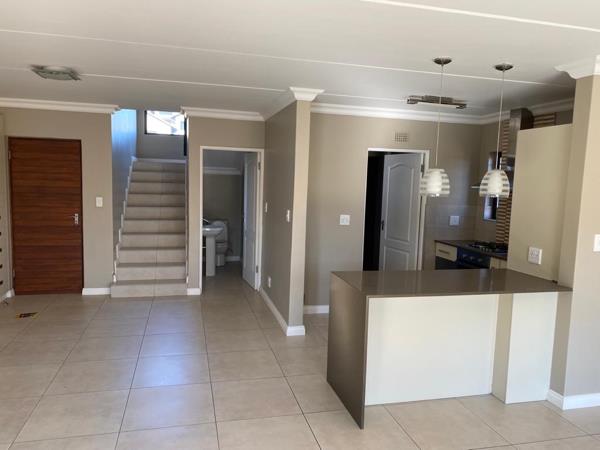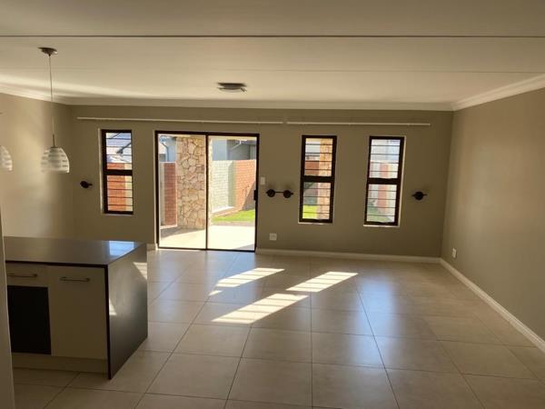 This spacious home is ideal for a couple or family and features a beautiful private garden and a double lock-up garage. The open-plan kitchen is well fitted with ample cabinetry, over-counter lighting, and a separate scullery with a door leading outside. The generous lounge and dining area comfortably accommodates a full lounge suite and a dining table seating up to eight.