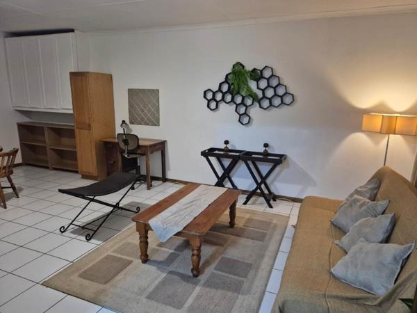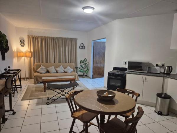 Fully furnished, light filled upstairs unit, perfect for a professional single person or couple. Looking for a secure lock up and go If you prefer the quieter country side living, then this unit should be on your list. Comprising of an open plan, lounge dining room and kitchen with a well sized, spacious bedroom, accommodating a queen size bed and side table. Standing on the private balcony you have the most stunning view of the Sandton skyline. Situated in Bridle Park, Sun Valley just North of the Inanda Country Base, the location is ideal for those involved in the equestrian activities in the greater Kyalami AH Equestrian area. All tar road access with easy access to the major routes and highways. Shade net carport with additional parking available. Rental amount includes water and electricity subject to fair usage with Wifi available at additional cost. Rental amount based on utility consumption of a single occupant R8000 per month. Deposits apply.