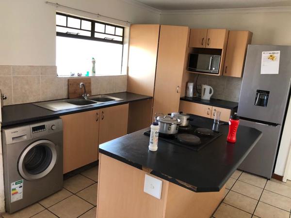 This lovely top floor apartment boasts 3 spacious bedrooms all tiled of which the main bedroom can comfortably fit a King bed with 2 side tables and a desk and has it''s own balcony and the 2 smaller bedrooms can fit a double bed each and both the main en-suite and shared bathroom are full bathrooms bathtub and shower. The apartment also offers a large open plan living room that can fit a large L-shape or U-shape lounge suite along with a spacious kitchen that has lots of cupboard space as well as 2 under counter appliance spaces and a separate dining room that can fit a 6-8 seater dining room set. The living room opens onto a large covered balcony ideal for fresh air and entertaining. The unit comes with a single open parking as well as a single lock up garage and there is ample open parking for visitors as well. The complex is very safe and secure with strict access control at the gate and 24-hour security guards that patrol through the complex. The complex is ideally situated within walking distance to Vodaworld and 2 Gautrain bus stops. The N1 highway is also nearby within a 5 min drive to New Road or Olifantsfontein main road. Nearby schools include Midranbd Primary, Midrand Secondary, Nove Pioneer, Curro Sagewood and many more.