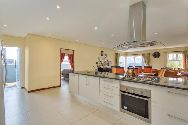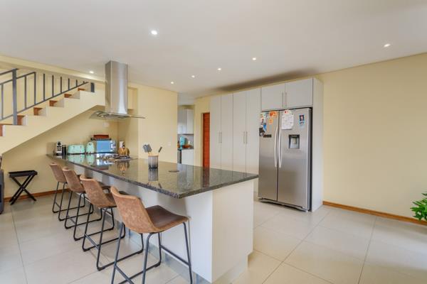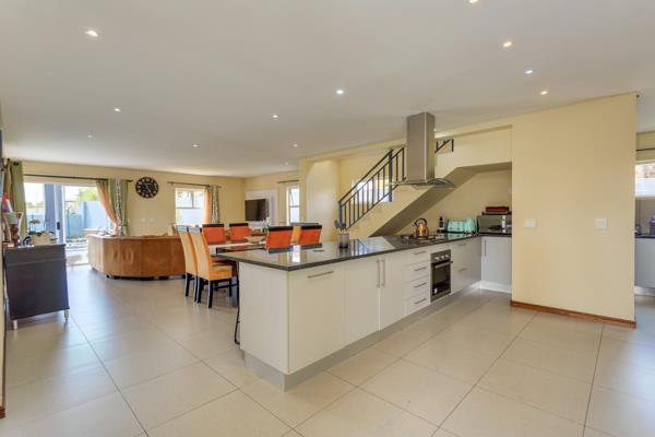 Situated on a desirable corner stand, this home boasts ample space for family activities. The ground floor features a guest bedroom with an en-suite bathroom, ideal for visitors or extended family. The open-plan living area is designed for modern living, flowing seamlessly into a large kitchen equipped with a separate scullery. The kitchen features an island with a gas hob and an under-counter oven, perfect for family gatherings and entertaining.