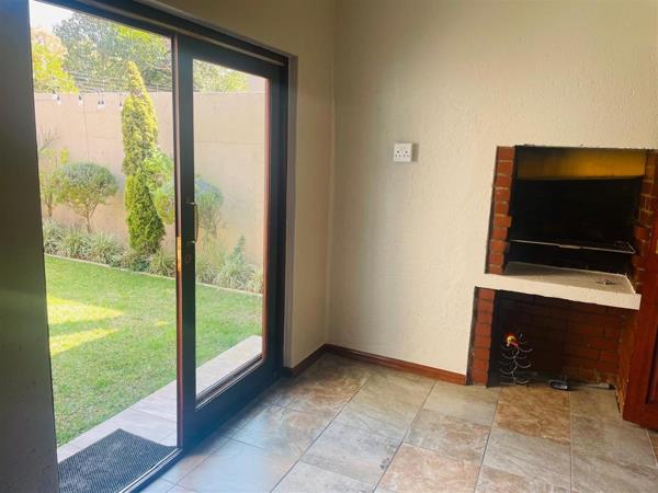 Downstairs, youll find a well-fitted kitchen with ample cupboard space and stone countertops, flowing seamlessly into an open-plan lounge and dining area. The living space leads to a covered braai area, perfect for year-round entertainment.