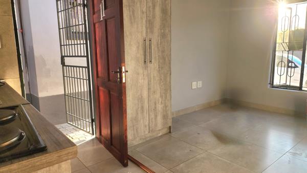 This two bedrooms house was recently renovated. It provides an open plan kitchen, and a bathroom with a shower and bathtub. The house is situated amongst a few newly built apartments. The complex offers security , electricity and water are pre-paid.