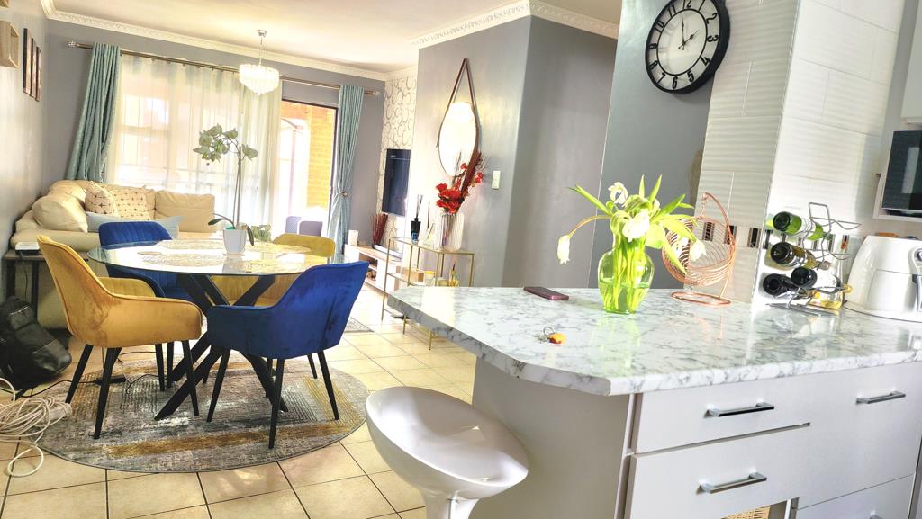 This beautiful, neat to the pin apartment is well situated in the sought after area of Midrand. The apartment boast two bedrooms and two bathroom, actually both bedrooms are en-suite, offering convenience to the family. The bedrooms are well sized, both fitted with cupboards enough for the space available.
