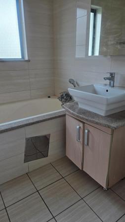 2 well sized bedrooms with modern cupboards and laminate floors. 2 bathrooms, the main ensuite has a bathtub and shower.