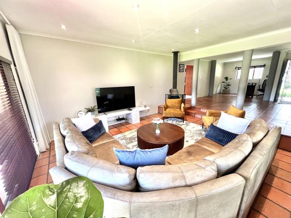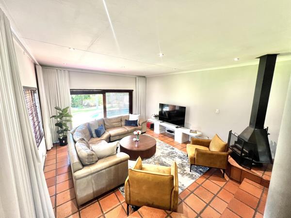 There is a sunroom with a built-in bar that adds a touch of elegance and versatility, which opens to a patio with a built-in braai, ideal for entertaining.