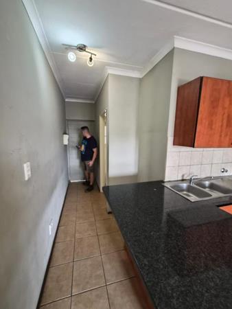 As you enter the complex, you are welcomed by a beautiful fitted kitchen with enough cupboards and space for 2 under-counter appliances. Leading you into a spacious open plan Lounge area. with sliding door into an enclosed patio that is overlooking a well maintained private garden.