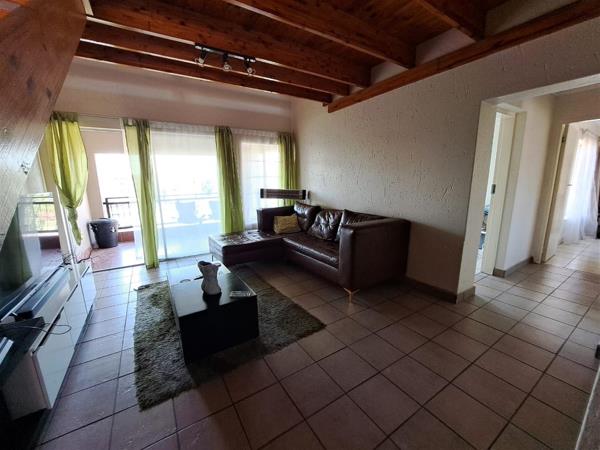 It features generously sized tiled bedrooms with built-in wardrobes, one full bathroom with both a bathtub and shower, and a loft-style third bedroom that can also be used as a second lounge.