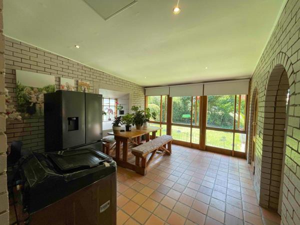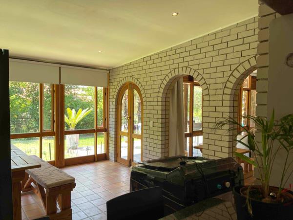 Open plan living areas: Dining room, lounge with fire place, Enclosed patio, built in braai, kiddies open plan playroom,