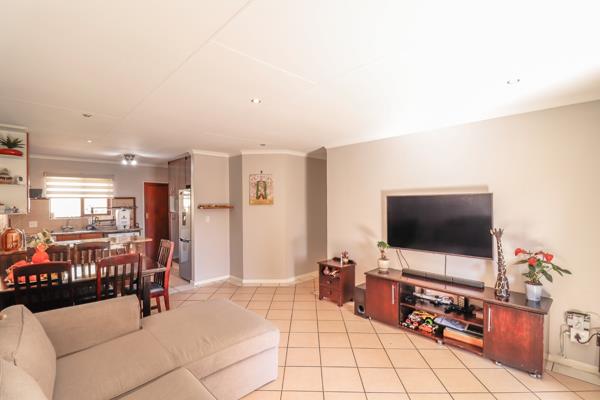 Immaculate property offering 3 spacious bedrooms, 2 full bathrooms, main en-suite. The bedrooms all have built-in cupboards. The kitchen is well sized with enough cupboard space, open plan lounge and dining area that leads to the garden area.