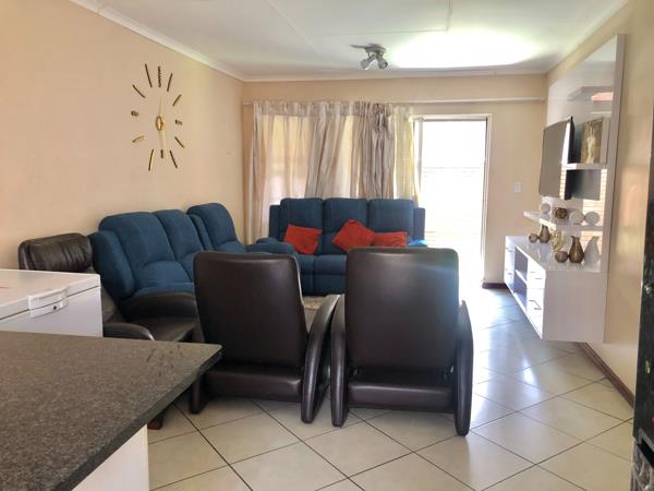 This unit offers an open-plan kitchen to the lounge area, 2 well-sized bedrooms both with built-in cupboards, and a full bathroom with modern fittings and finishes and also features a patio. The unit also offers a lock-up garage.