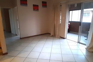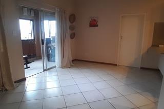 The kitchen is fitted with ample built-in cupboards and provides space for two appliances as well as a single-door fridge. It opens into a spacious open-plan lounge, which leads out onto a covered and secure balcony, ideal for everyday relaxation.