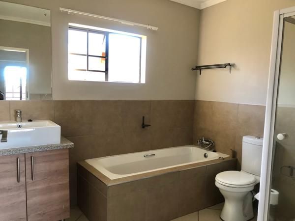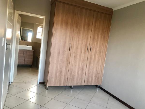 This 3 Bedroom unit is ideal for family and it is in a very secured area. This lovely townhouse offers, Open-plan kitchen that features built-in cupboards, 2 under-counter space and double door fridge space, open-plan lounge onto the patio. 3 tiled bedroom with built-in cupboards, 2 full Bathrooms, one being an 1 en-suite , private garden, and double garage.