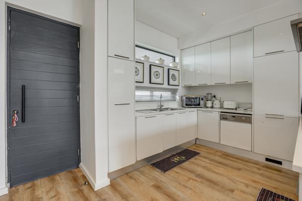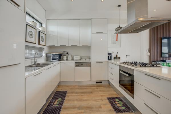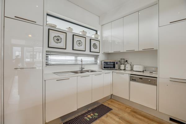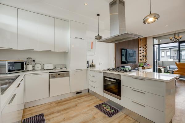 The kitchen is fitted with high-end built-in appliances including a fridge, dishwasher, and washing machine making everyday living easy and convenient.