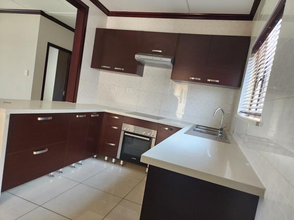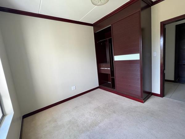 Discover the perfect blend of style, comfort, and convenience in this modern apartment in Midrand, located in the sought-after Rosa Royale complex. This beautifully presented two-bedroom and 2-bathroom rental offers a lifestyle of ease and security, making it an ideal choice for professionals and small families. Step inside to find a spacious and bright interior featuring elegant, tiled floors throughout. The kitchen is a highlight, boasting sophisticated mahogany wood finishes that create a warm and inviting atmosphere. Both bedrooms are generously sized, with wooden laminated floors, offering ample space for relaxation, while the full bathroom is modern and functional.
