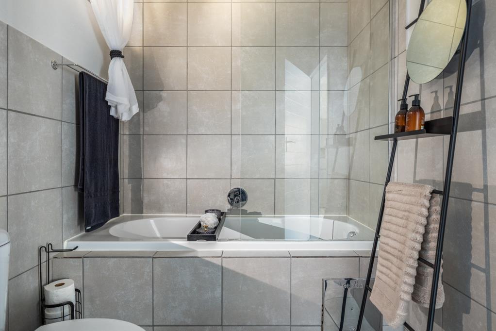 A spacious bathroom with a separate shower and bathtub, offering both convenience and luxury.