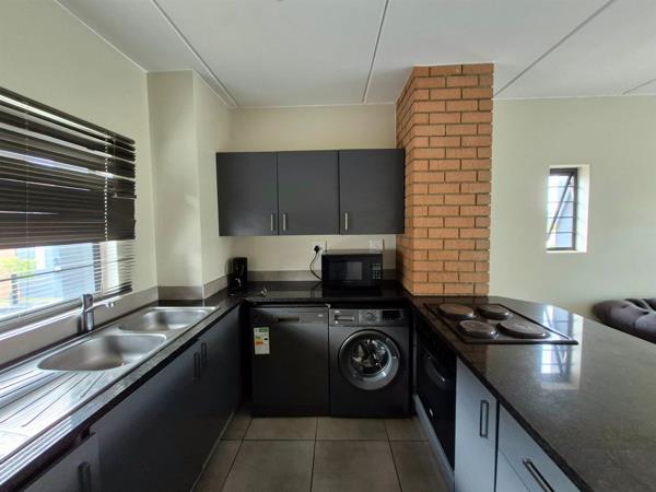 The apartment features a spacious open-plan lounge and dining area leading into a well-designed kitchen fitted with modern appliances - Fridge, Washing Machine, Microwave and Dishwasher. Both bedrooms are well-sized with built-in cupboards and the bathrooms is stylish and functional.