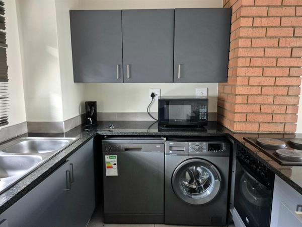 The apartment features a spacious open-plan lounge and dining area leading into a well-designed kitchen fitted with modern appliances - Fridge, Washing Machine, Microwave and Dishwasher. Both bedrooms are well-sized with built-in cupboards and the bathrooms is stylish and functional.