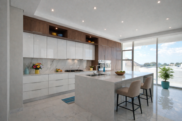 At the heart of the residence is a sophisticated designer kitchen, finished with premium materials and complemented by a separate scullery, perfectly balancing style and practicality. Superior fittings and finishes are evident throughout, including Gerberit toilet systems and other top-tier specifications, reflecting the homes refined attention to detail.