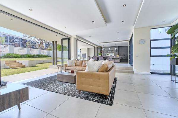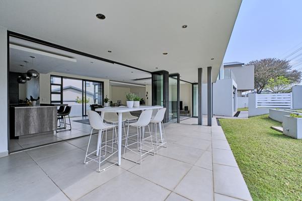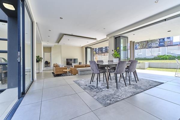 Stacking doors open out to a spacious, covered patio overlooking a beautifully manicured garden, complete with a computerised irrigation system.