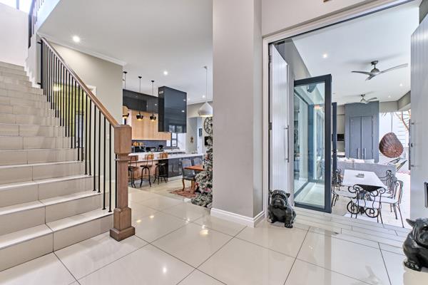 Step into elegance with this fully furnished 5-bedroom, 4.5-bathroom family home. Nestled in Waterfall Country Village, an exclusive, upmarket estate with 24hrs controlled security. Designed and furnished for comfort and convenience, each bedroom is fitted with air-conditioning, ensuring comfortable year-round weather conditions. You will find 4 of the bedrooms situated upstairs of which 2 bedrooms share a Jack and Jill full bathroom. A convenient coffee station, a must have on the upper level of the home. The 5th bedroom on the lower level has its own en-suite bathroom and is perfect for guests.