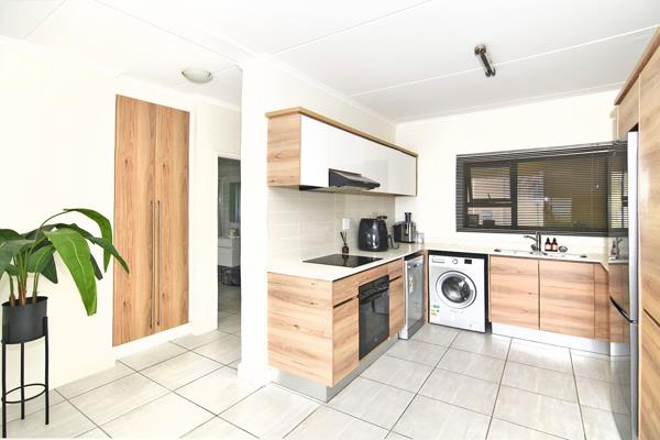 The open plan kitchen is a culinary haven, featuring Caesar stone countertops, built-in cupboards, and top-of-the-line appliances including a DEFY fridge/freezer, washing machine, tumble dryer, and dishwasher. Whether you''re a seasoned chef or just enjoy the occasional meal preparation, this kitchen is sure to inspire your culinary creativity.