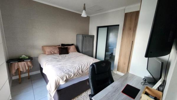 The bedroom is well-sized with ample cupboard space, and the modern bathroom features quality finishes throughout. Fibre and DSTV-ready, with prepaid utilities for convenience.