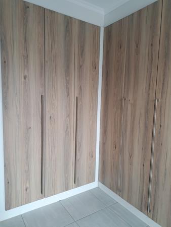 Second bedroom: Generously sized with extensive built-in cupboard.