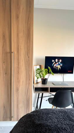 The spacious bedroom offers a peaceful retreat, complete with built-in wardrobes and an en-suite bathroom designed with contemporary fixtures for your comfort.