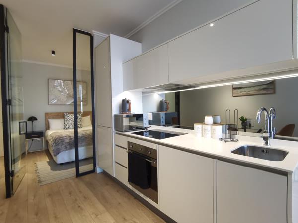 The Kitchen has integrated Smeg appliances (Fridge, dishwasher, washer/dryer, microwave) that leads to an open planned lounge area and patio balcony with beautiful garden space.