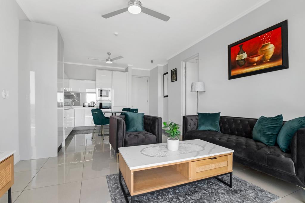 Fully furnished 2-bedroom, 2 en-suite bathroom apartment on the 10th floor of the sought-after Ellipse Towers. West-facing and filled with natural light, this home offers comfort, style, and access to world-class amenitiesideal for professionals, couples, or small families. The apartment features top-quality finishes throughout, including Hansgrohe fittings, a modern high-gloss kitchen with Caesarstone countertops, and a double sink with mixer. Fitted with blinds, additional cupboard space, cooling fans AND AN ADDITIONAL STORAGE UNIT, the property quickly elevates to the ideal property. Cooking is a pleasure with fully integrated Smeg appliances: an electric hob and extractor, fridge/freezer combo, microwave, dishwasher, and a washer/dryer combination. High ceilings and expansive sliding doors in the bedrooms and living areas open onto a spacious covered balcony and private garden, perfect for relaxing or entertaining.